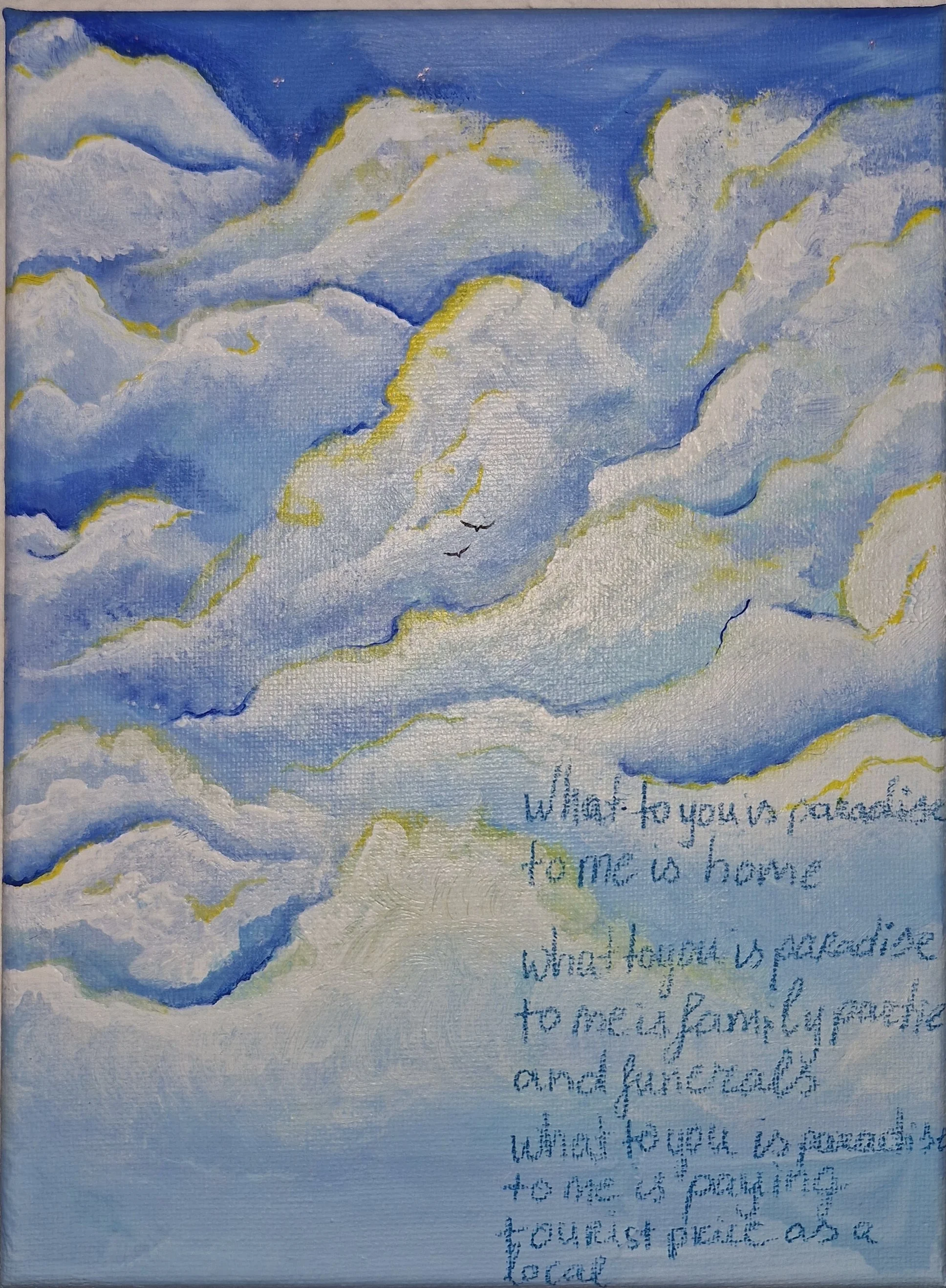 I am a multidisciplinary artist who works with Poetry, Acrylic paint, oil paint, and installation work.